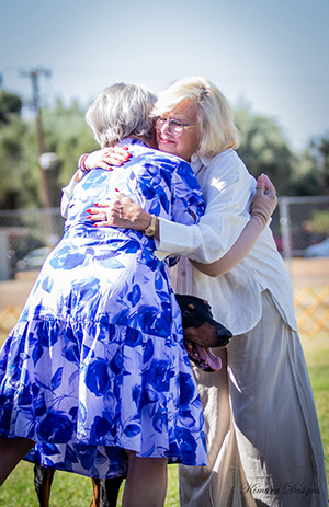 My applause to the highly respected and long-time running Doberman Pinscher Cub of Sacramento. Founded in 1965. Sheila Dinardo and Luis Silva were the highly respected Breeder-Judges having the honors of presiding over a beautiful West Coast entry of its finest Doberman Pinschers this year. Long time President. Adrian Woodfork NEVER leaves any stone unturned in putting on both this and the weekend’s All- Breed Shows. Again, a standing ovation to you all and a big shout out to You Nick Smith of Kimura Designs for this Amazing Photo of Mrs. DiNardo after awarding the Veteran Dog Best of Breed. This is TRULY what Judging dogs should be all about!!!